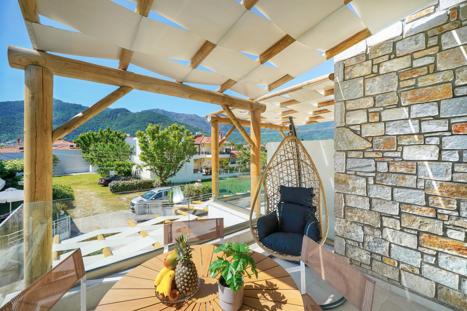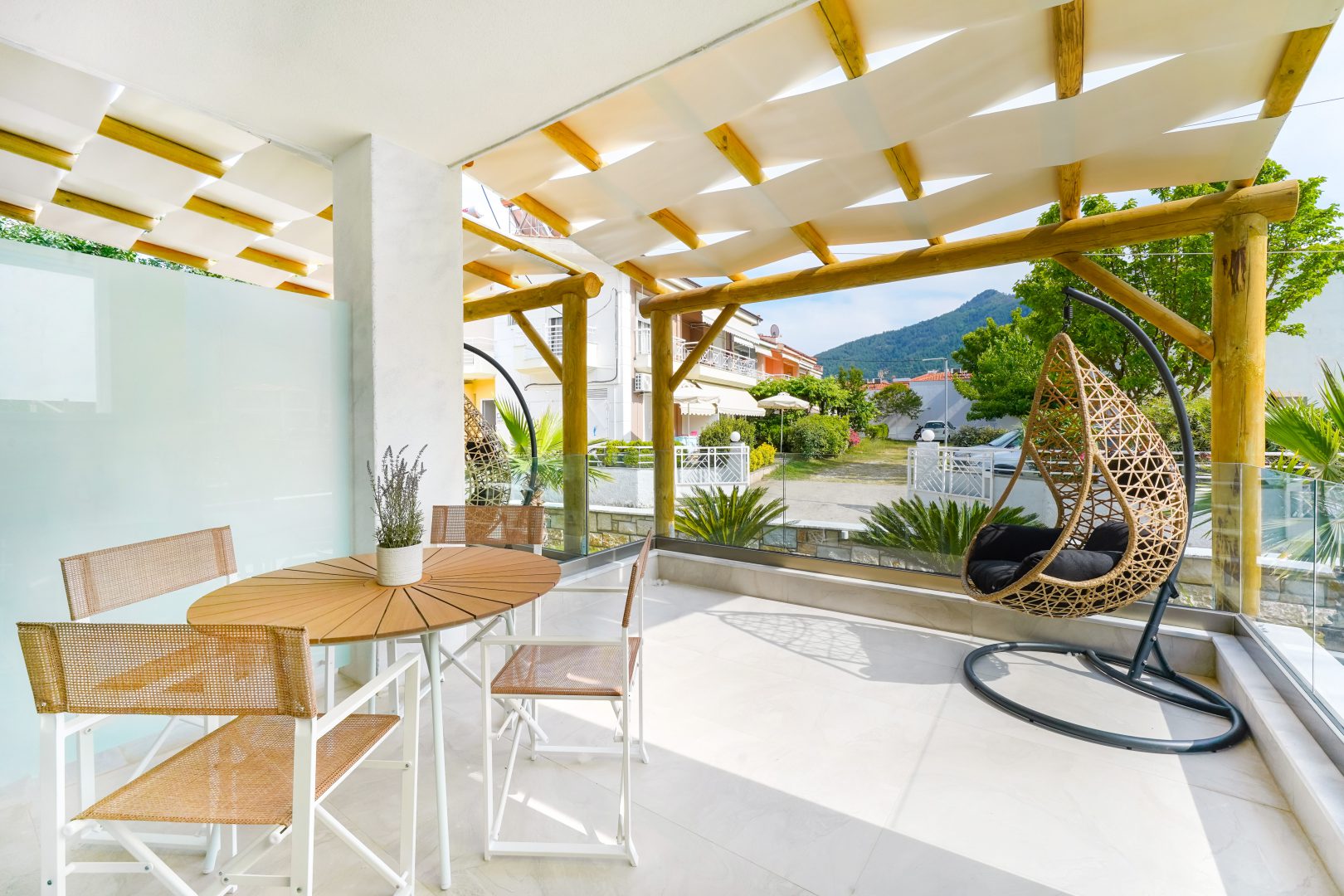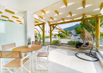 The apartments offer an equipped kitchen, bathroom, fully-furnished balconies and terraces, where you can relax and take in the amazing garden view.